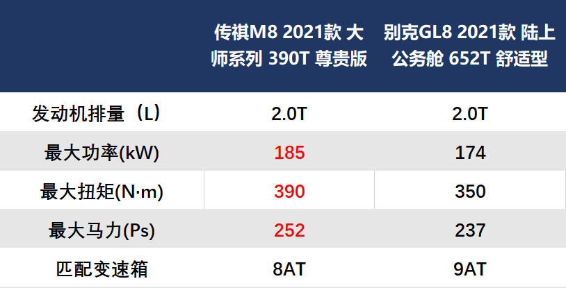 也可以这么说,全新传祺M8不单是外形有埃尔法的影子,内饰更有着埃尔法的高级。 “钜浪动力”平台,提升M8行驶品质 动力上,M8搭载的是2.0T发动机匹配爱信8AT变速箱。GL8同样也搭载2.0T发动机,但匹配的是通用9AT变速箱。尽管大家都是2.0T发动机,但是M8得益于“钜浪动力”平台,其2.0T发动机的最大功率达到185kW,最大扭矩达到390N·m,在实际动力输出上会比GL8更高一些。