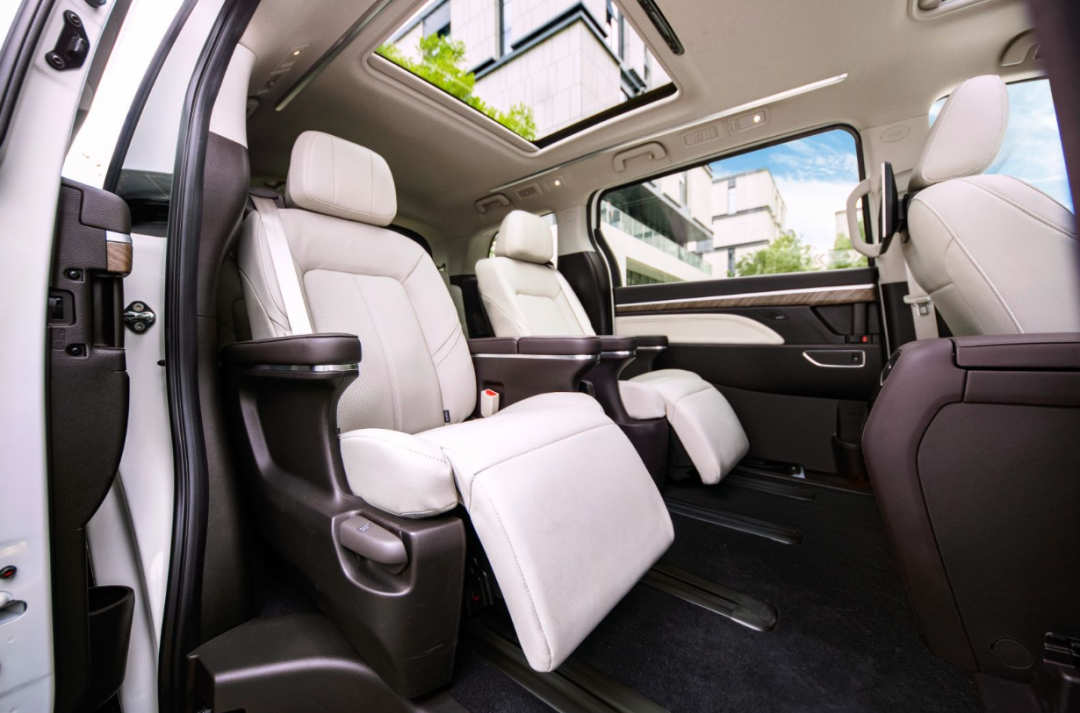 就从上车开始起,M8带有的双侧电动滑移门就要比GL8还停留在手动阶段要高级不少。 而众多MPV车主最看重的座椅方面,全新传祺M8参照了飞机头等舱的座椅设计,采用高级头层真皮打孔,并对座椅进行宽大、加厚处理,配以独立固定式宽大扶手、座椅通风加热及按摩功能、舒适型睡眠头枕、宽大的电动腿托……此等奢华享受,任谁都得承认全新传祺M8在“老板位”的设置上的确做得十分完美。 ADiGO智联系统,让M8实现更多可能